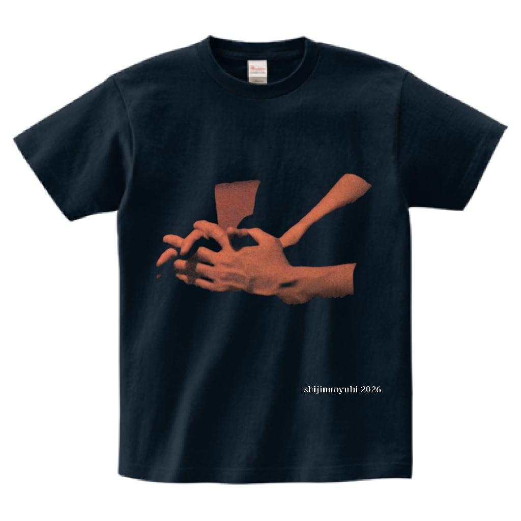 詩人の指Tシャツは、『やさしく象にふまれたい』などの詩集を書いているオノツバサ自らの手を象ったTシャツです。春先から秋口まで、普段使いから寝間着まで幅広く使えます。